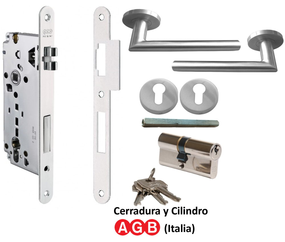 SEGURIDAD LLAVE/LLAVE: Par Manillas 809, Cerradura Seguridad y Cilindro Llave/Llave AGB (Italia)
