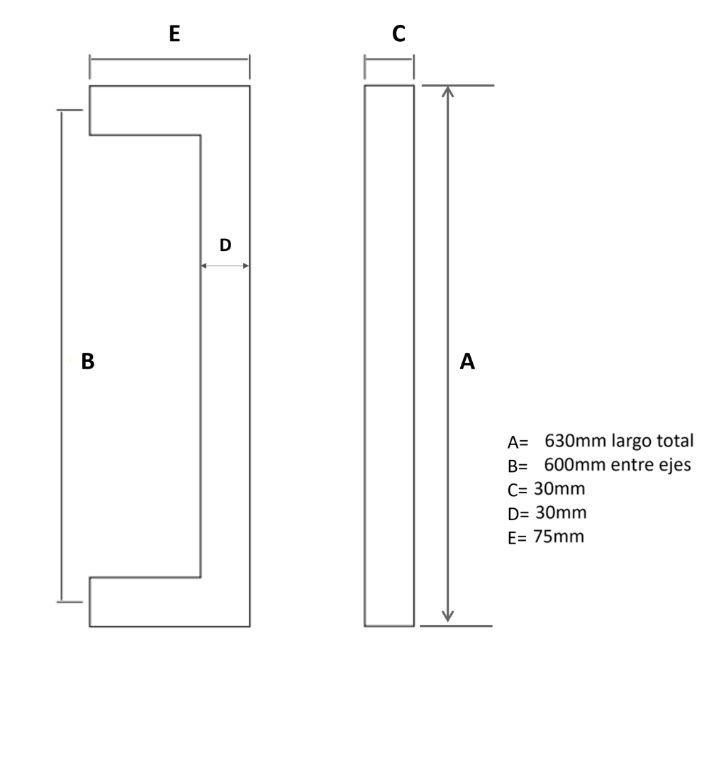 MEDIDAS: 30mm. x 30mm. largo total 630mm. y 600mm. entre ejes.