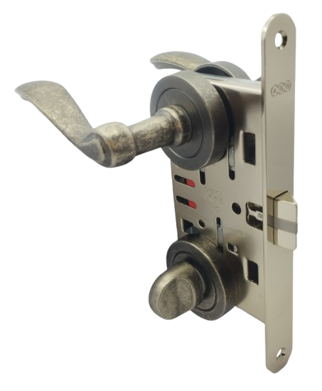 BAÑO: Par Manillas Apollo Acero Antiguo Seguro Emergencia y Cerradura AGB (Italia)